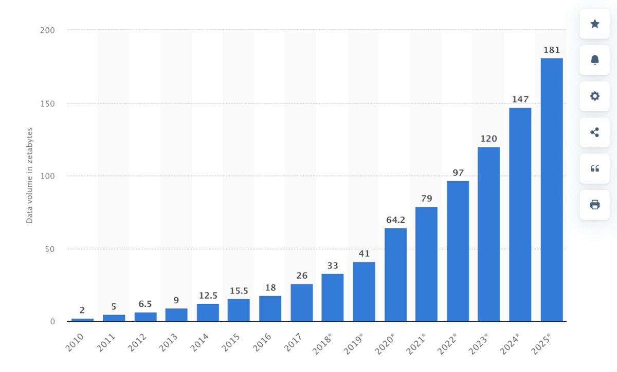 To understand the value proposition of the Filecoin network, its essential to first understand the current limitations of centralised storage providers like Amazon and Google. While it's difficult to determine with precision, it is projected that the world's data will reach 181 zettabytes (ZB) by 2025. To put this into context, one zettabyte (ZB) is equivalent to one trillion gigabytes (GB).