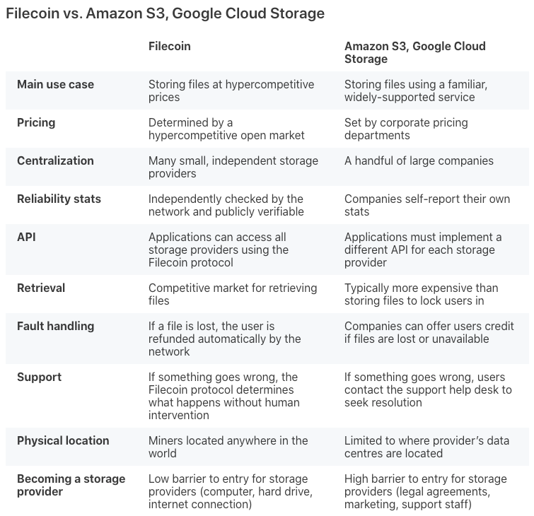 Filecoin vs Centralised Cloud Storage Providers