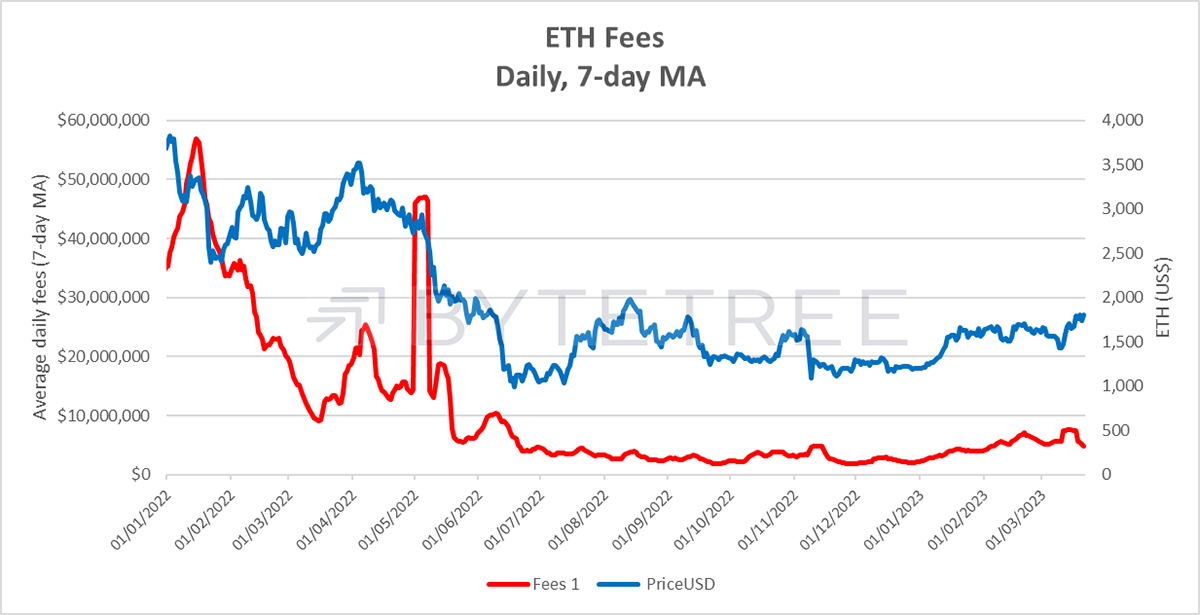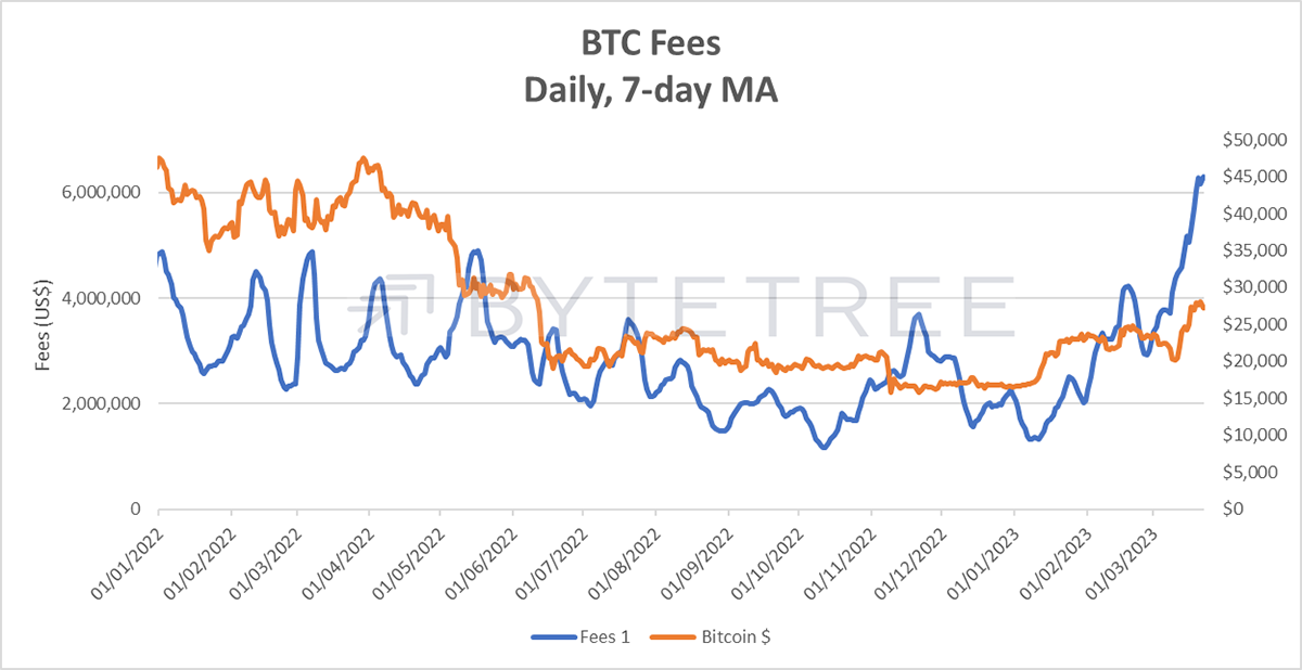 You can see below that the average daily fees have risen substantially from a low of ~US$1.2m on 10 October 2022 to around US$6.3m now.