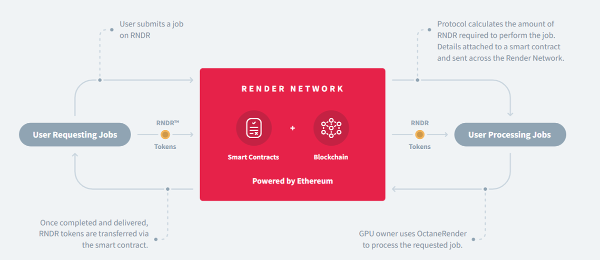 Render’s Multi-Tier Pricing (MTP) protocol automatically assigns node operators to suitable jobs based on their reputation scores and the creators’ specifications. Node operators can then use OctaneRender to access, process and complete the job according to its specifications. Creators can access the rendering in real-time and have the ability to flag discrepancies. Once the job is done, the creator then verifies and accepts the job. This whole process is called Proof of Render.