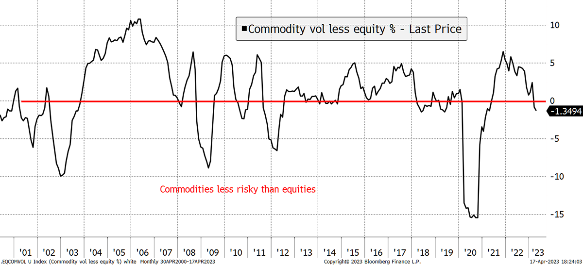 Importantly the allocations also help to diversify both portfolios, a subject close to our hearts in these times of heightened political and economic certainty. Of note is that commodity volatility is lower than equities, which hints at an attractive entry point.