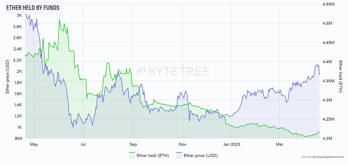 The Shapella upgrade has brought out some enthusiasm for ETH, on the other hand. The Funds see inflows for the first time in a while.
