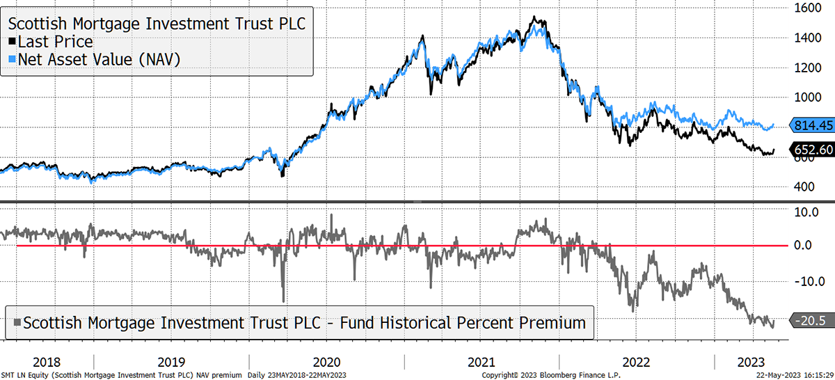 Most blame SMT’s discount-to-net-asset-value on the unlisted companies, and there is some truth to that. But its competitor, Polar Tech Trust (PCT), trades at a 12% discount and has no unlisted assets, so there is an opportunity in capturing negative sentiment in the sector.