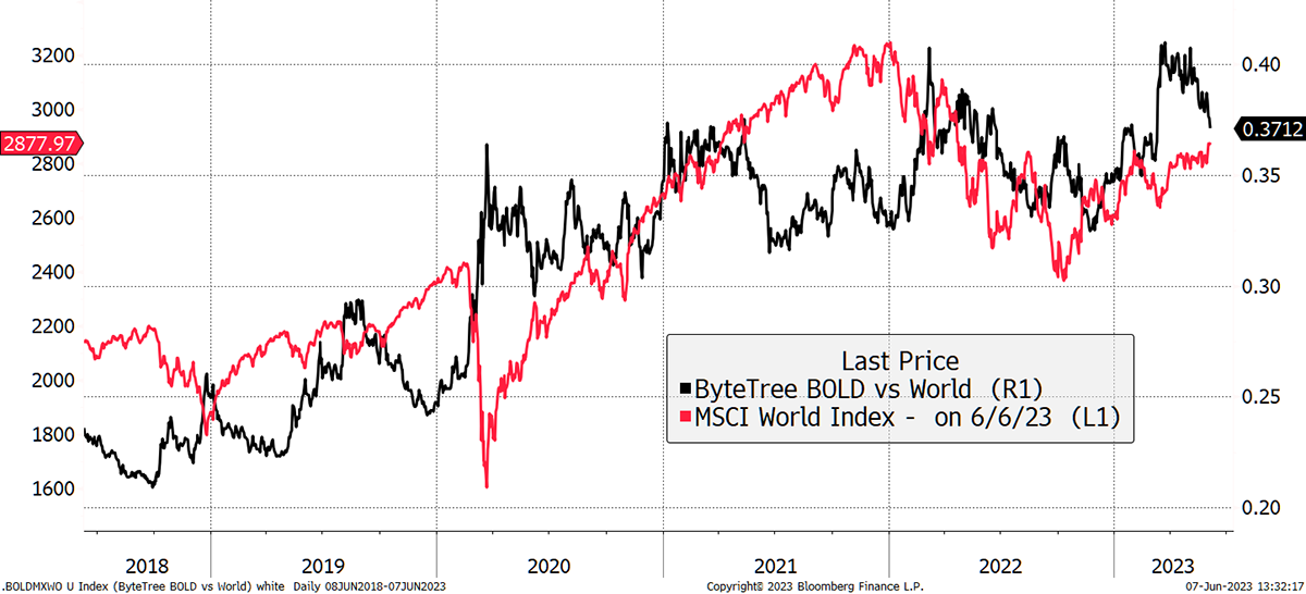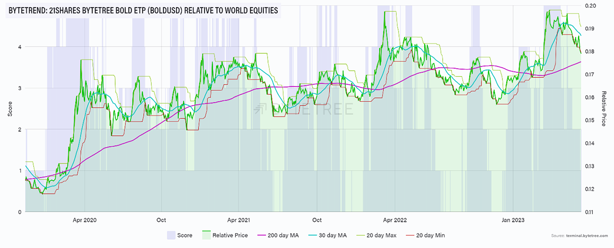 BOLD versus WI seems to work in reverse to WI itself, despite delivering higher returns over time. That means it is an alpha-generating portfolio diversifier. Back up the truck.