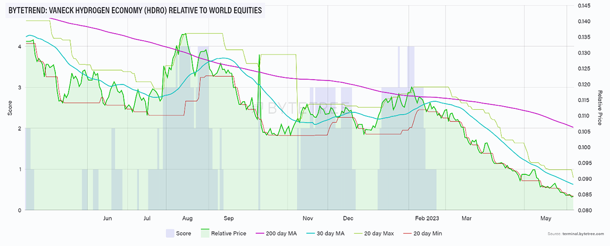 I mentioned EVs, but the story I really like is hydrogen, as it is such a promising way to store surplus alternative energy. Not only that, but fuel cells are much lighter than batteries. Most car companies are racing towards EVs, leaving the likes of Toyota and JCB more focused on hydrogen. I can’t wait to buy hydrogen stocks, but the 0-star trend is a very good reason to wait. In the meantime, find some stronger trends.