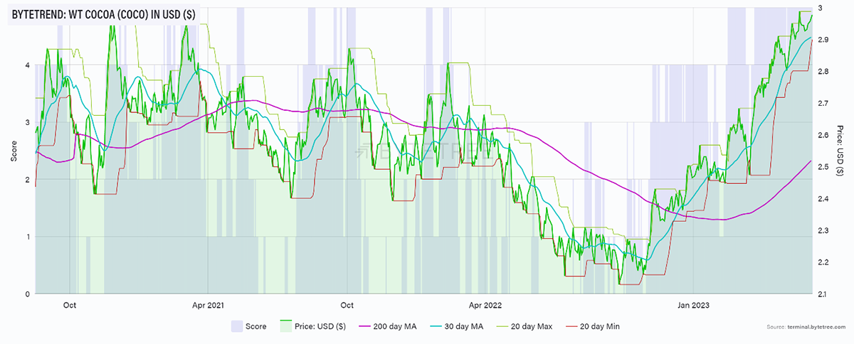 Cocoa is the strongest trend in commodities, which have come under pressure since peaking after the war in Ukraine. Sooner or later, more commodities will have strong trends, which will make it a safer place to invest.