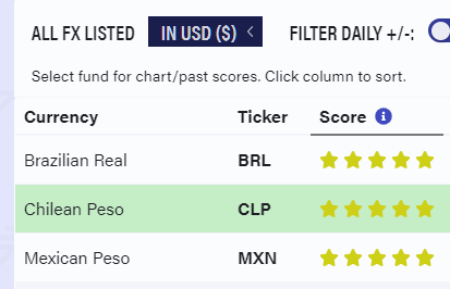 In FX, the strongest currencies are in Latin America, with the Chilean Peso leading the way.