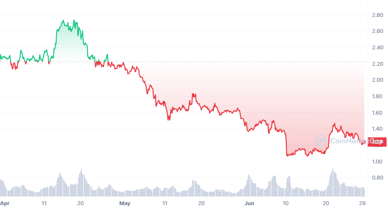 In the last 90 days, OP hit a high of $2.73 on 18 April 2023. However, the price dropped significantly in the following weeks, and the token is currently trading at $1.23. This negative price action can be attributed to the overall bearish sentiment in the crypto market.