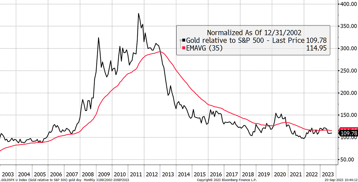 Last night, the Federal Reserve said interest rates will be higher for longer. It hasn’t gone down well so far, and gold is down along with stocks. But when rates start to fall, perhaps late next year, gold will meaningfully outperform stocks, just as it did in dotcom and 2008.