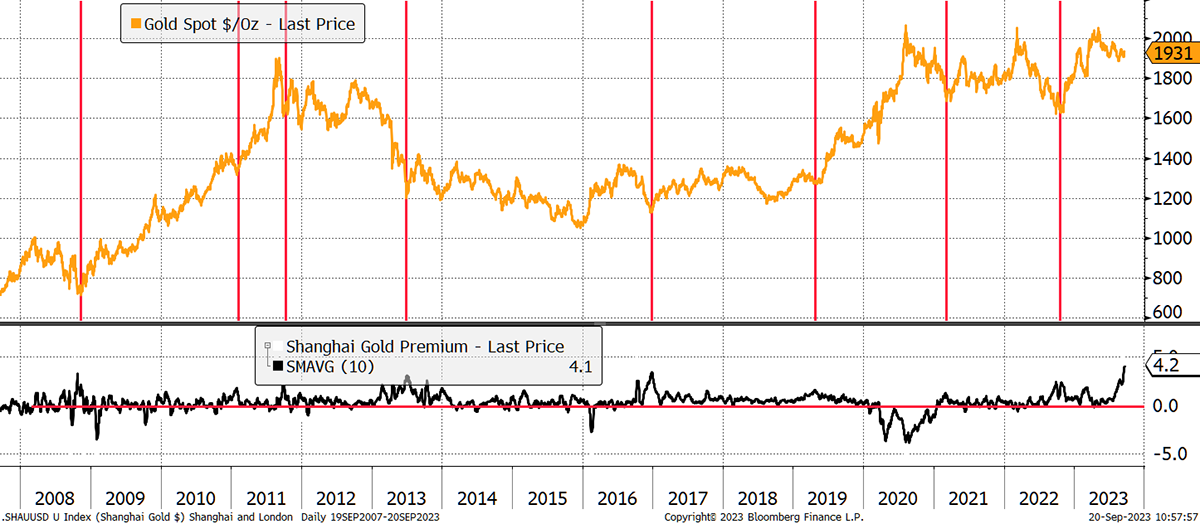 John Reade, chief strategist at the World Gold Council, pointed out last week that the Shanghai Premium was back. That simply means gold is more expensive in China than on the world market. This happens every other year or so, but this time, it witnesses the highest premium ever recorded.