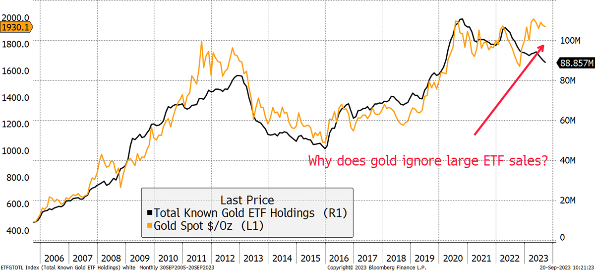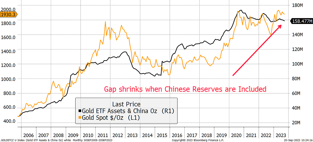 This has been hugely important for the gold price over the past year or two. Gold analysts have become used to the idea that the gold ETFs represent the marginal buyer, and therefore are the price setter. For 15 years, we could closely correlate the gold price with ETF flows, but recently, that relationship has broken down.