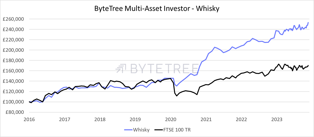 Whisky’s +12.9% is a good result, and if you strip out the comparison with Mag 7, it’s a great result. Moreover, the gap with the market keeps widening in our favour. Whisky has made 152.2% since inception in 2016, which is more than twice the stockmarket (+70.2%).