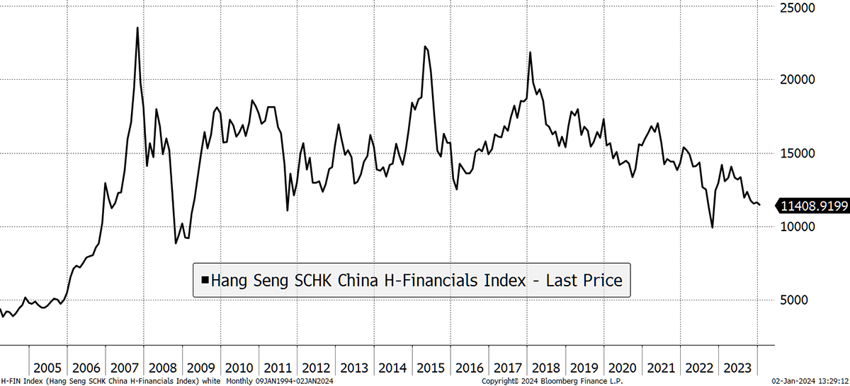 What’s surprising about that statement is that it was Munger who popularised the idea of investing in brands. These companies are characterised by high margins, high returns and “deep moats” to protect them from competition. The risk here is their margins come under pressure, and they are derated by the market. It would be a devastating blow to the many investors as they hold these “defensive” companies in the belief they will never disappoint. In 2024, I think they might.