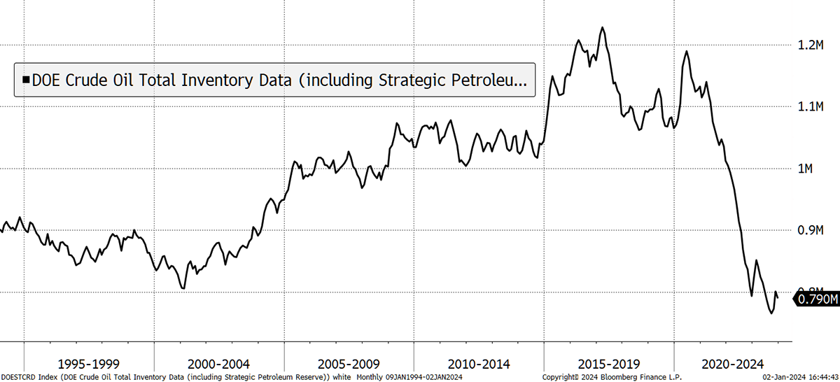 And why did the price fall from $120 to $80? One reason was the release of 400 million barrels from the US strategic reserves onto the global market to balance the Russian-induced supply squeeze. Presumably, these reserves need to be rebuilt at some point.