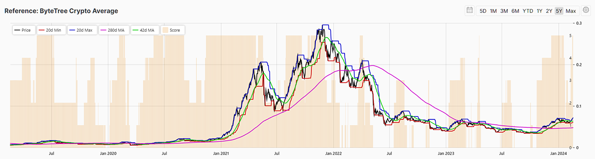 The ByteTree Crypto Average (BCA) is on 5 stars again, which simply means the average token is going up, and this rally could have much further to go.
