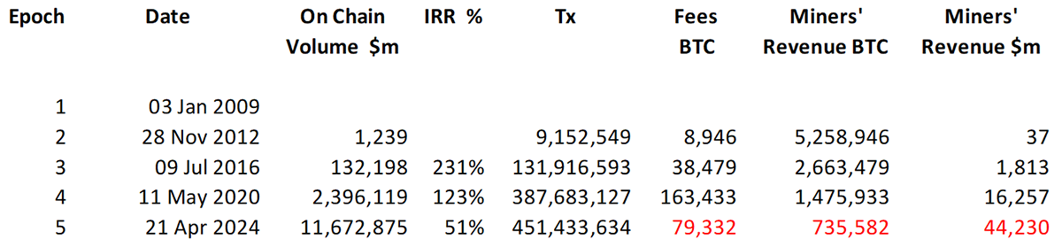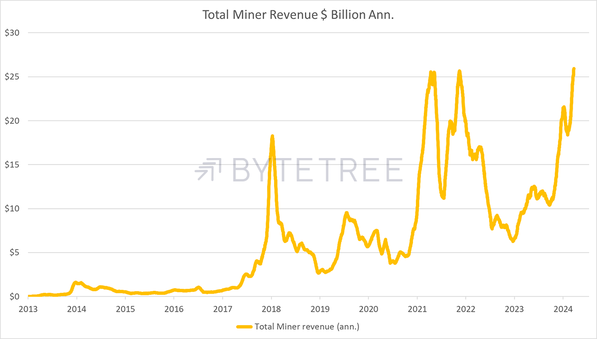 Since Bitcoin’s inception in 2009, miners have earned $62,321,959,555, which is a lot of money. The basic idea is that each cycle sees the miners receiving fewer Bitcoins, and the popular view is the price rises to compensate.