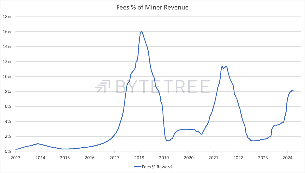 Percentage of Fees in Bitcoin Miner Revenue