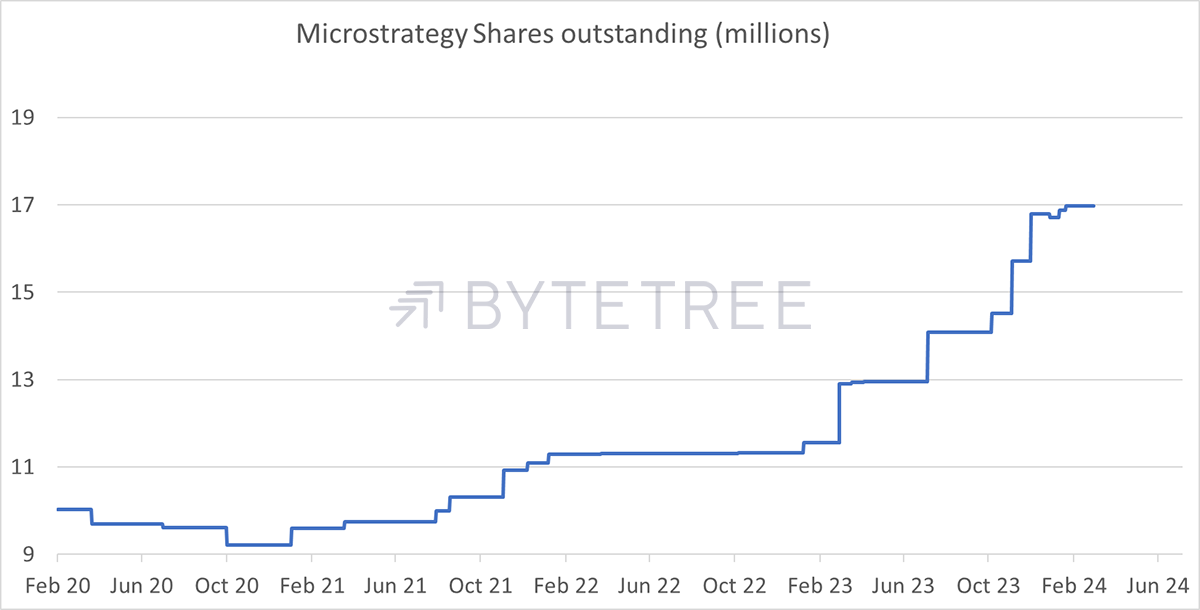 MSTR has been issuing equity to accumulate Bitcoin.