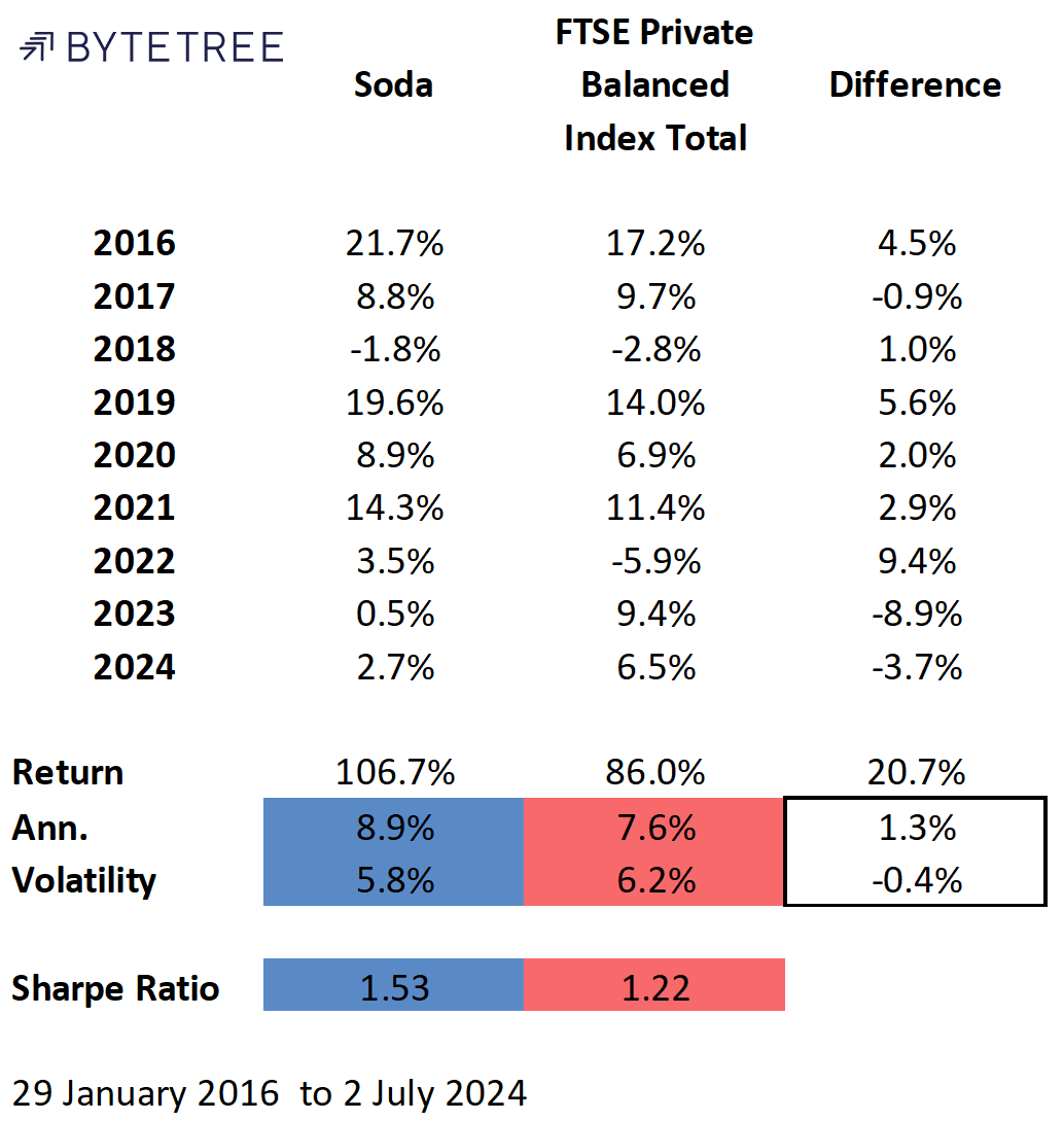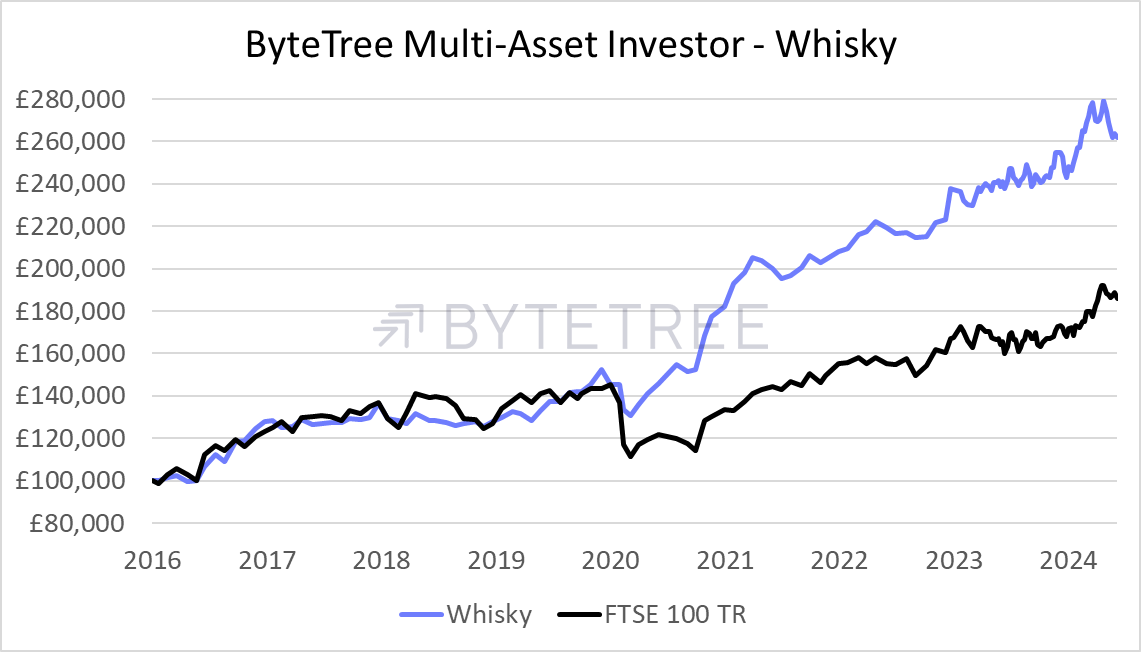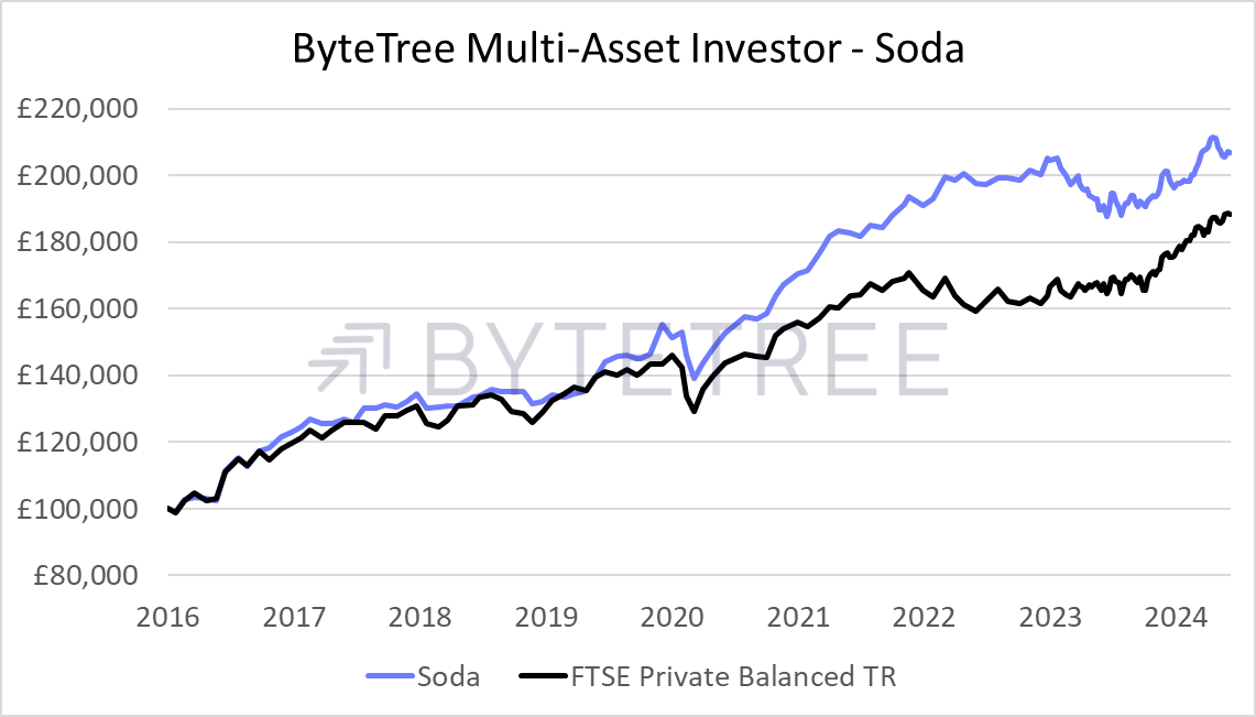 In this piece, I will update performance data for the Soda (balanced) and Whisky Portfolios (large-cap equity), which were launched on 29 January 2016, to include Q2 2024. These portfolios sit in The Multi-Asset Investor, and with 8.5 years of performance, the records are starting to stand out.