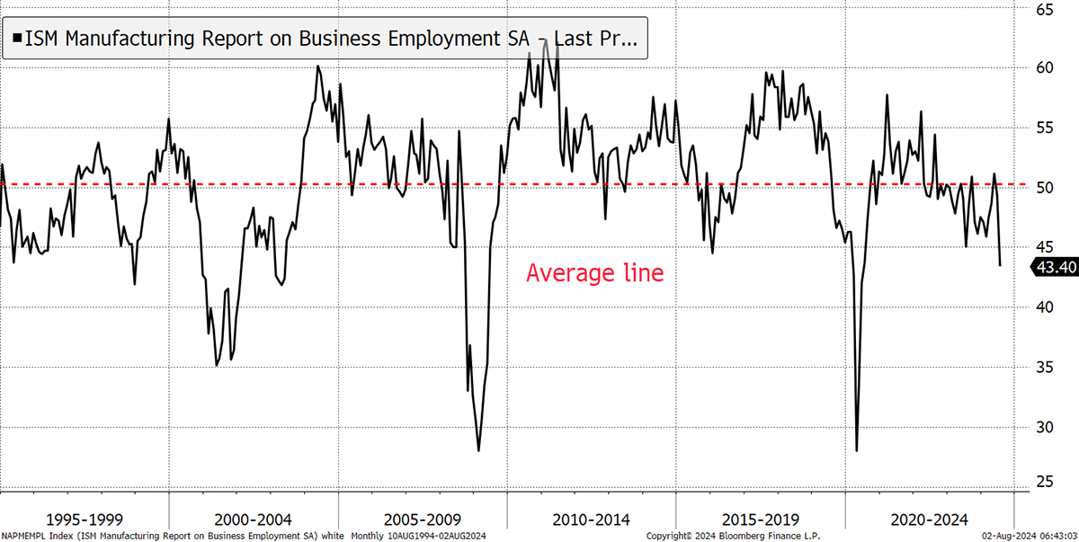 Then, the US employment data was released yesterday, and it keeps pointing towards a slowdown. Bloomberg’s John Authers interpreted the negative market reaction as a sign that the Fed has made a policy error by leaving the cuts for too long. Business employment is contracting, which heightens the risk of a recession.