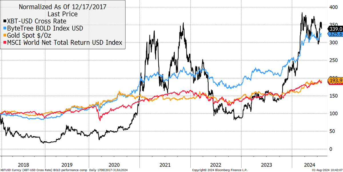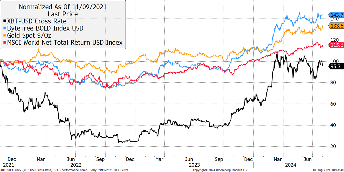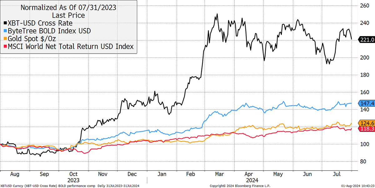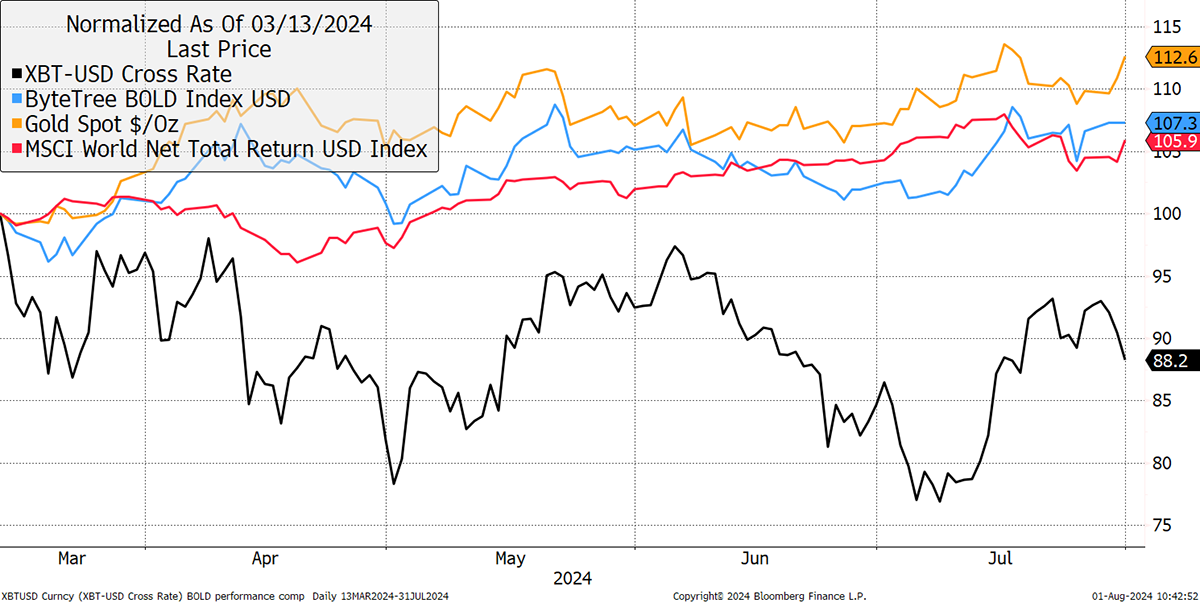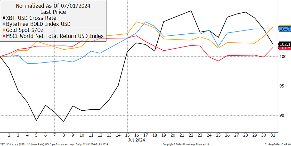 Bitcoin, Gold, BOLD, Equities in July 2024