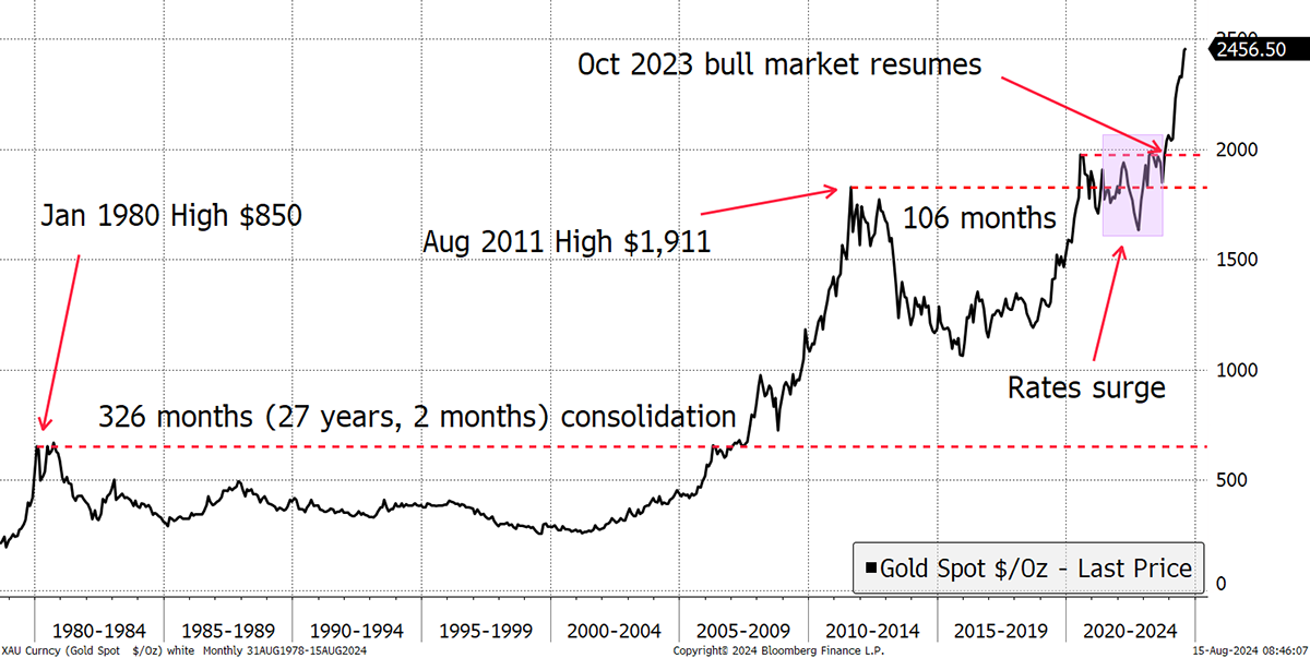 So many gold doubters but there’s no doubt in the trend. I show the gold price since the late 1970s and how it took 27 years to reach a new high in 2006/7. Then the price surged to $1,911, before consolidating for nearly nine years, to the pandemic high in mid-2020. Gold then fought off the rate hikes, against the odds, and is making progress. It’s a booming, yet contrarian trade, because it is so quiet.