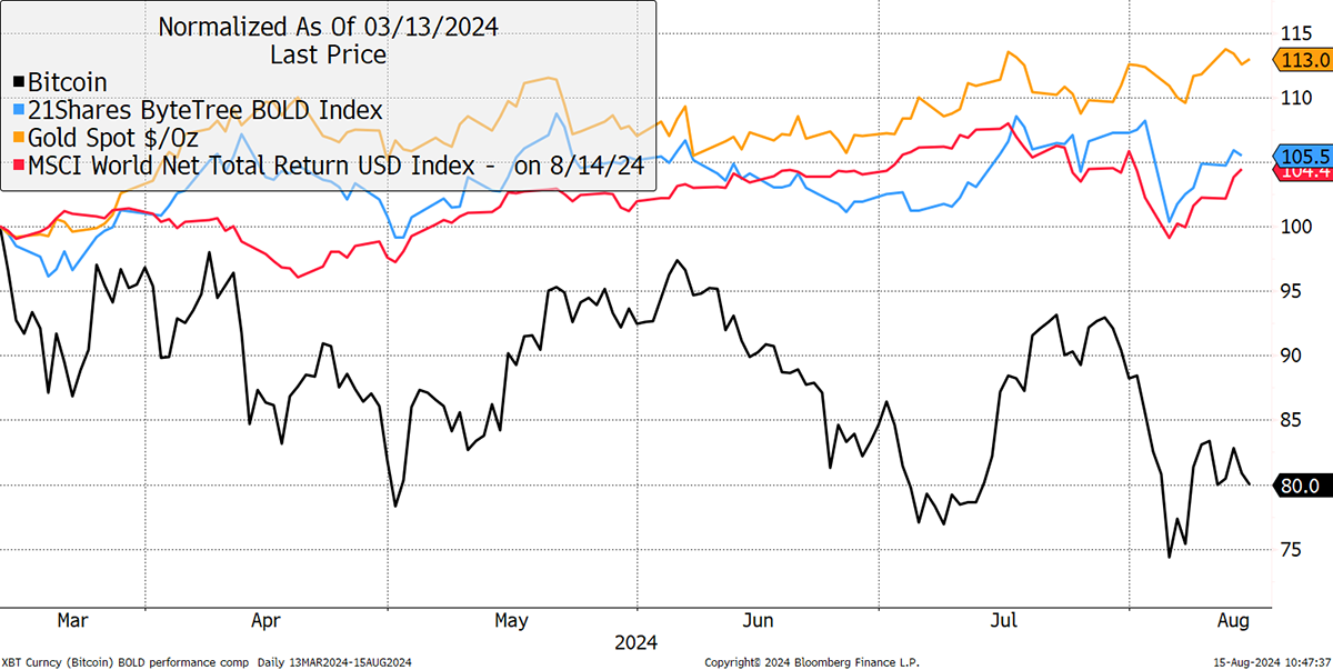 Bitcoin, Gold, and BOLD Since the 13 March High