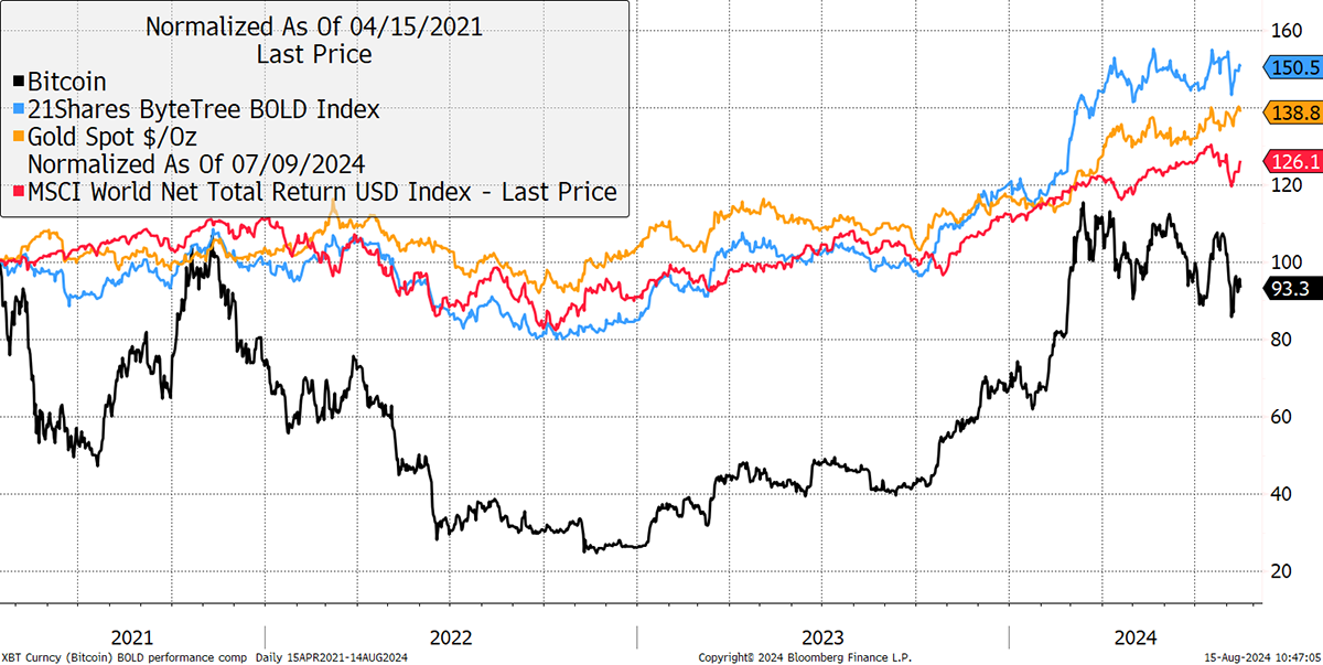 Bitcoin, Gold, and BOLD Since the 15 April 2021 High