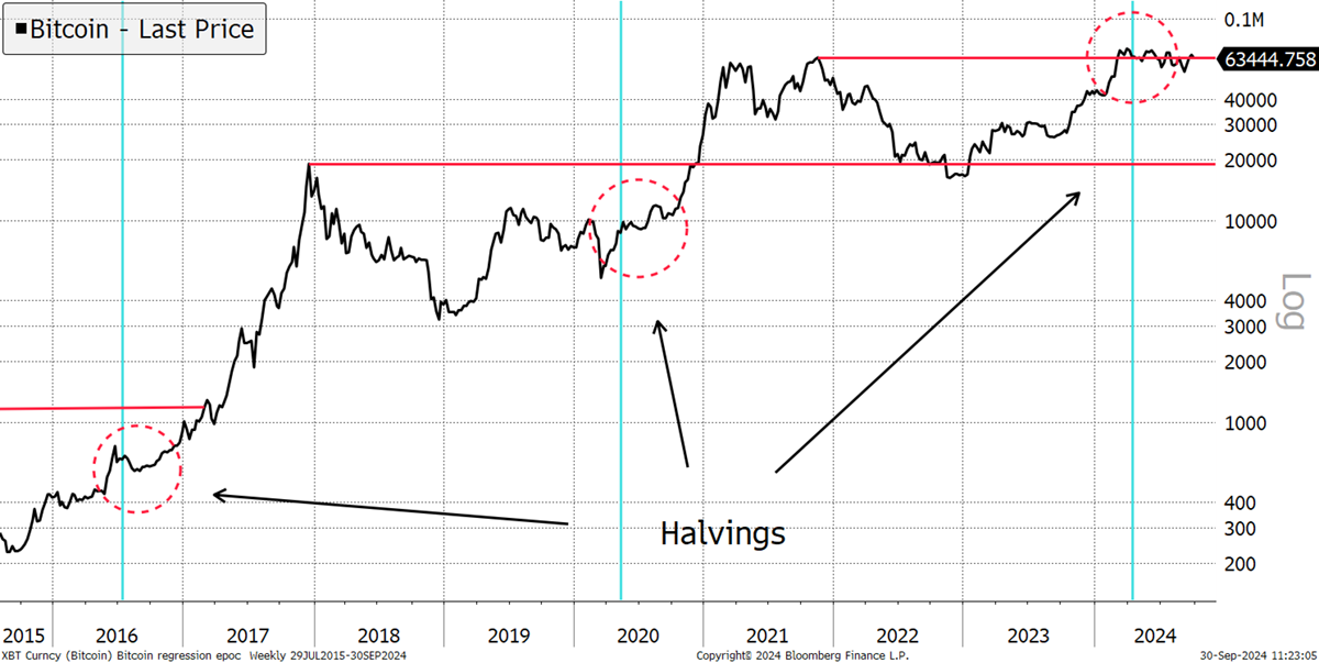 Although a split room, with Seran, an Uptober believer and Ali, a sceptic, I too was a believer. 2024 has been a halving year, and while the majority seem to expect a post-halving surge, what we have actually seen is a pre-halving surge followed by a six-month consolidation before the breakout comes.