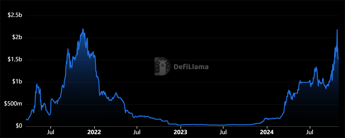 Raydium’s total value locked (TVL) has surged from $164m at the beginning of 2024 to over $1.5bn today, marking an impressive 814% growth this year. The earlier dip in liquidity was largely due to the collapse of FTX, which had strong ties to both Solana and Raydium, as well as the broader industry downturn. However, 2024 has been a remarkable year for Solana and its ecosystem, drawing substantial user interest and liquidity from various platforms. This appeal spans individual users, projects from other chains like Ethereum, and institutional investors, fuelling Raydium’s growth to new highs.