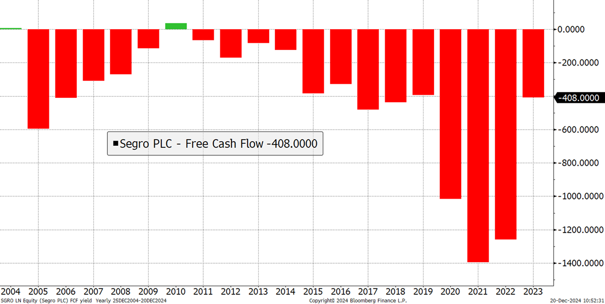 The UK’s most valuable commercial property REIT, Segro (SGRO), has rarely generated FCF.