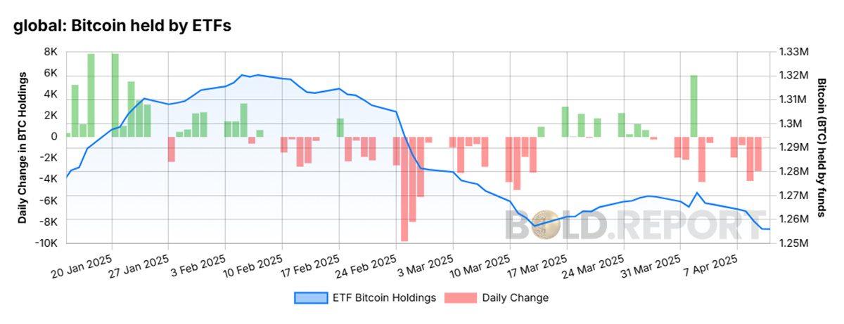 But those investors aren鈥檛 coming over quite yet, as the market is still seeing outflows from the ETFs. When this flow improves, it will be supportive of price.
