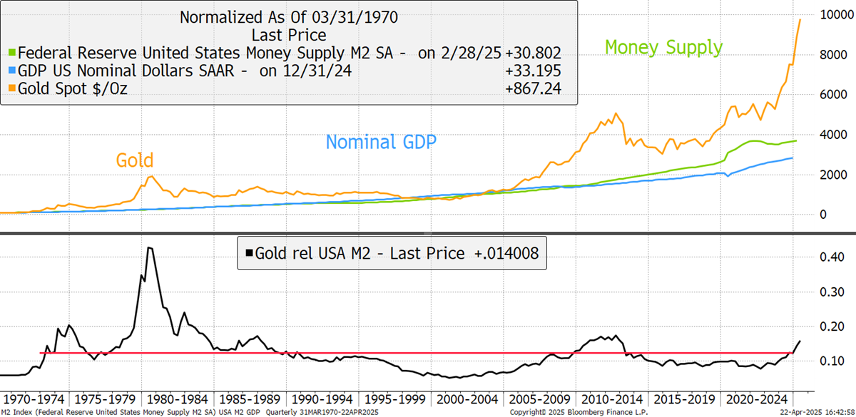 Gold, Nominal GDP, and the Money Supply – since 1970