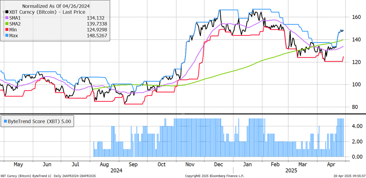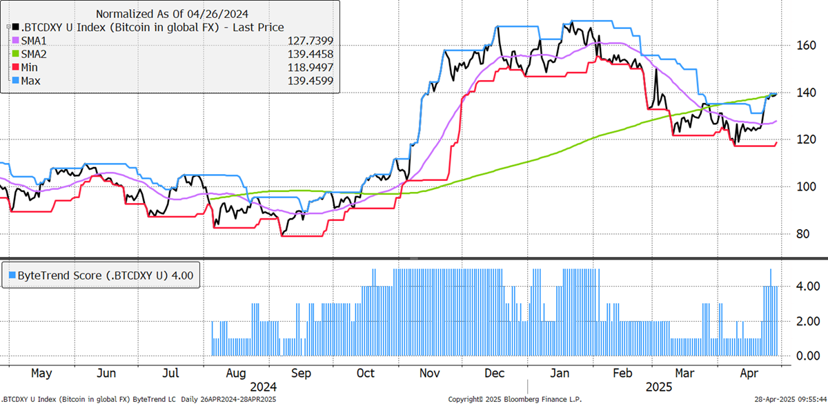 Bitcoin ByteTrend Score 4 of 5 in Non-Dollar terms