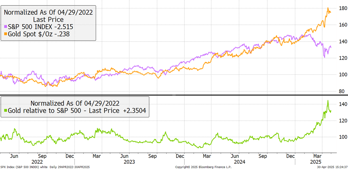 Since that time, two things have changed. Firstly, Gold is beating the S&P 500 by quite a wide margin.