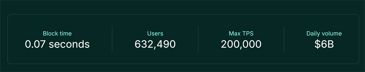 Hyperliquid’s technological backbone plays a crucial role in its success. The protocol boasts block times as low as 0.07 seconds and a throughput capacity of up to 200k transactions per second (TPS).