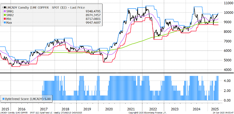 London Metals Exchange Copper Spot – 10 years