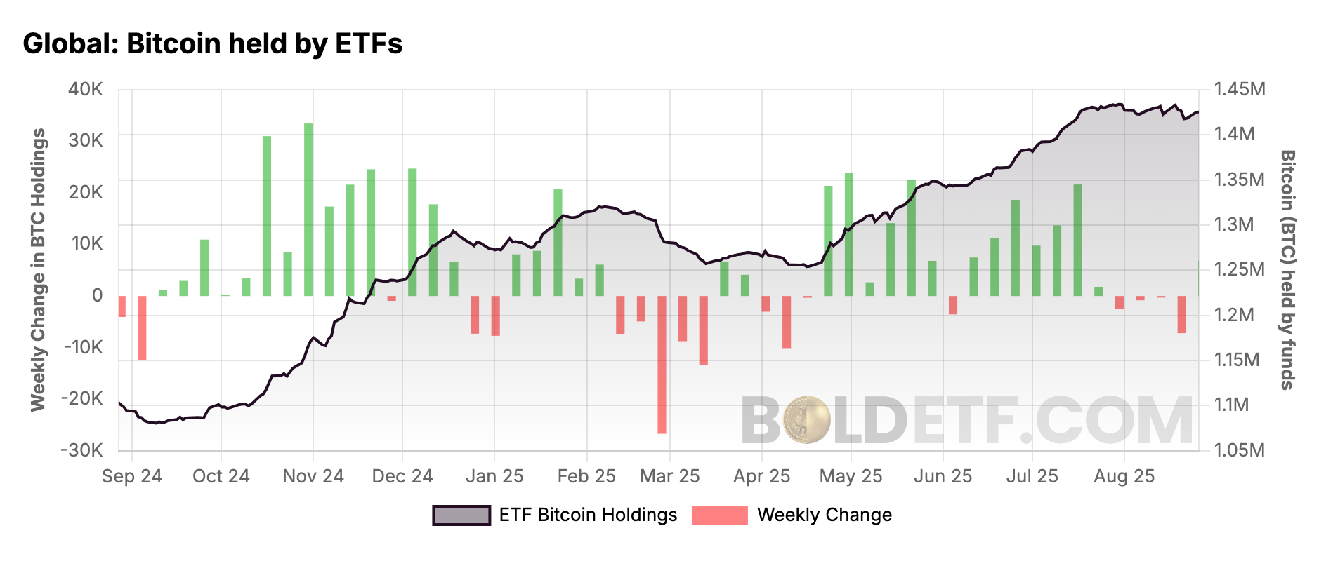 But the flows into the ETFs and the treasury companies have slowed. The ETFs have been net sellers, but only slightly, and this needs to turn for Bitcoin to regain its momentum. The good news is that the UK ETF market will fly on 8 October, just 43 days away. The UK is a major financial centre, and clarification on Bitcoin ETF status will be felt around the world.