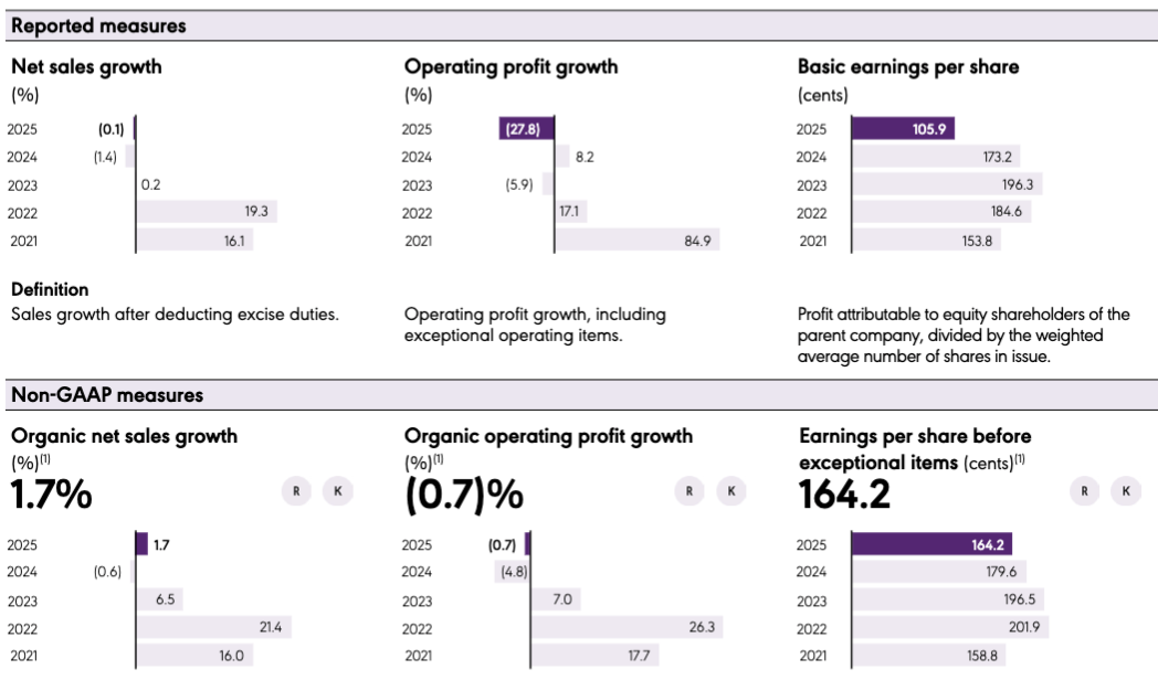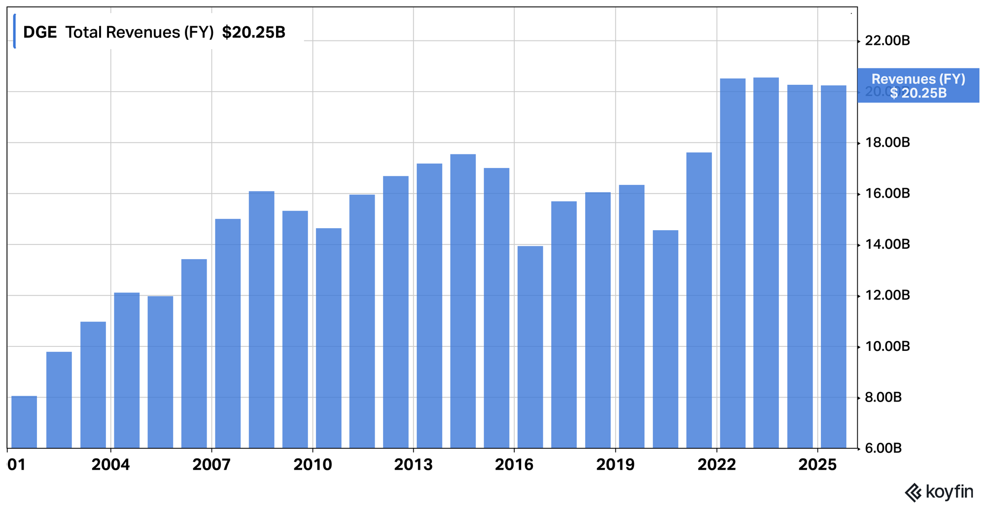 Between 2021-2023, Diageo achieved 14.5% compound revenue growth. Then, in 2024, group organic net sales declined 0.6%, and in 2025, they failed to bounce back. This is the main reason why the shares are down as much as they are.