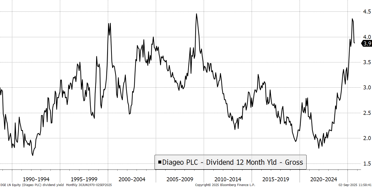 Given that alcohol consumption has been a part of human nature for millennia, and Diageo’s brands been meeting that desire superbly for centuries, the recent developments are not a cause for concern. At the very least, they are widely studied and have driven the valuation to levels where we feel adequately compensated for the risk. More to the point, there was a booze bubble during the pandemic, and many of us seem to have sobered up since. Diageo’s dividend yield has reached levels associated with historical highs.