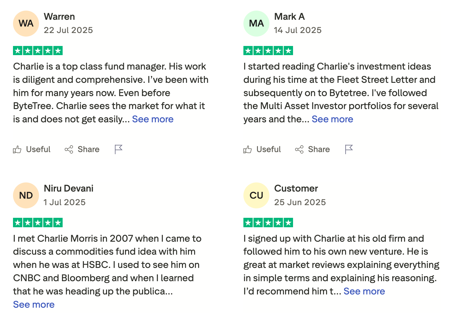 At ByteTree, we believe in offering excellent investment research services at reasonable prices. This is exactly what we hope to deliver with ByteTree Quality. Our track record and Trustpilot reviews reflect that.