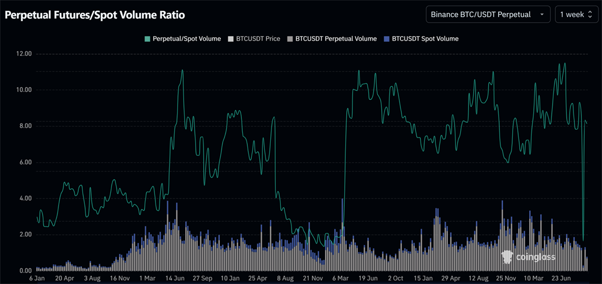 BTC Perpetual Futures vs Spot Volumes