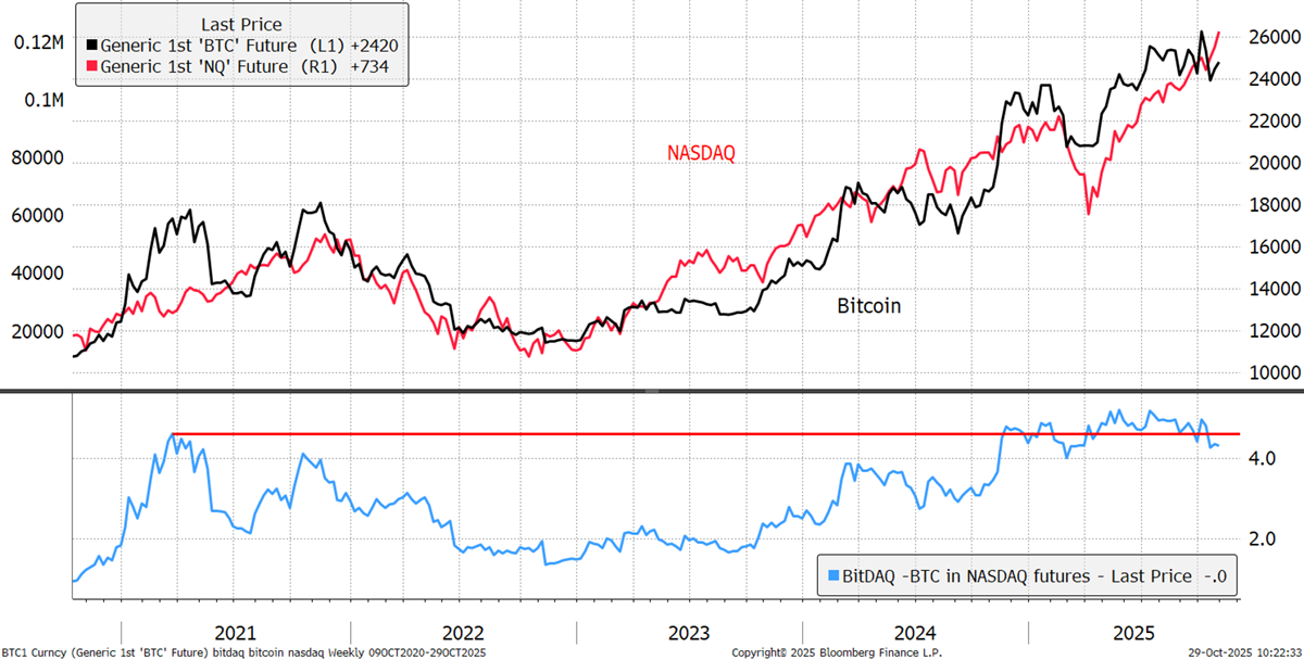 I continue to believe that the chart below is the single most important chart for Bitcoin. Technology stocks have made another new all-time high and have left Bitcoin behind. This is far from a disaster, but a material break will kill the narrative that Bitcoin is part of the tech trade. The dream is that when tech eventually blows up, Bitcoin carries on. At least, that’s my dream.
