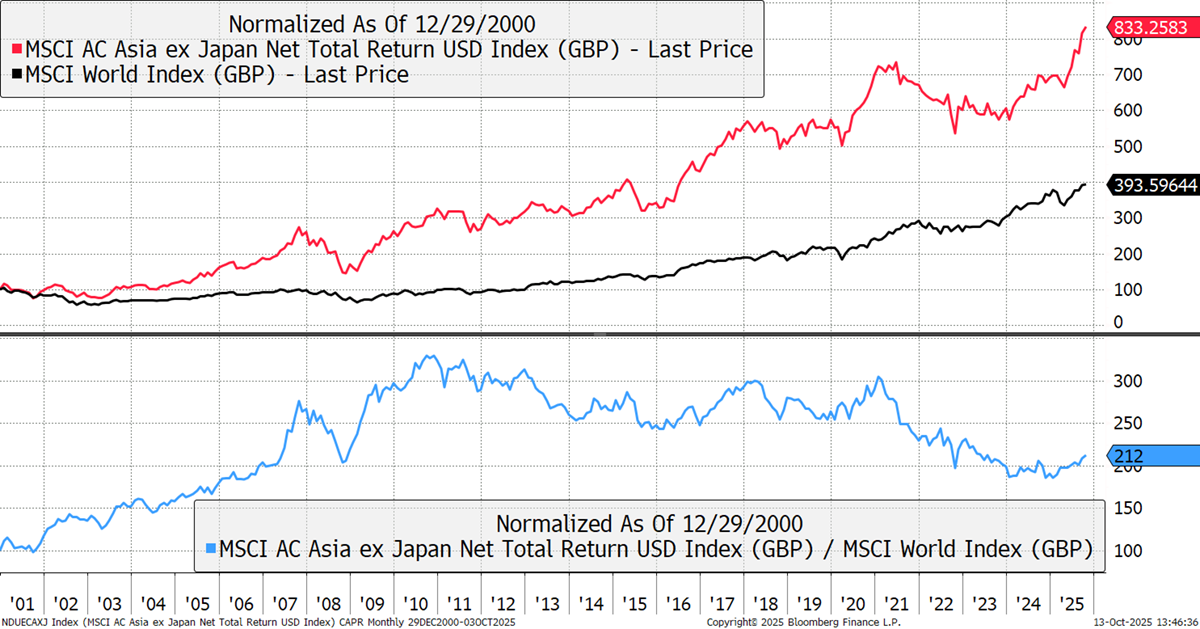 The Asian recovery is upon us. The MSCI Asia Index ex Japan has been lagging the world since 2010, but that has turned. Led by Hong Kong and Singapore, Asian stocks are starting to deliver.