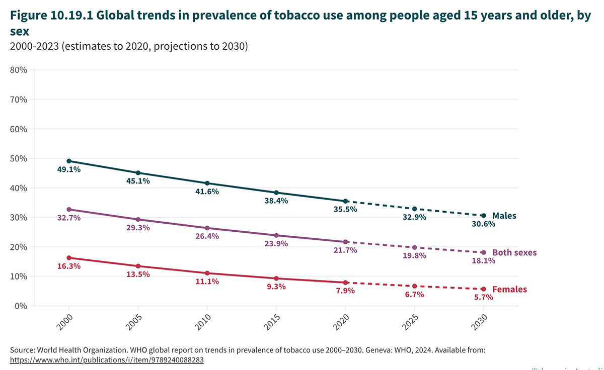 The WHO says the number of tobacco users has dropped from 1.38 billion in 2000 to 1.2 billion in 2024. Nonetheless, 350 young adults start smoking every day. Having taken up the habit, it takes an average of 30 attempts to stop, and many never succeed.