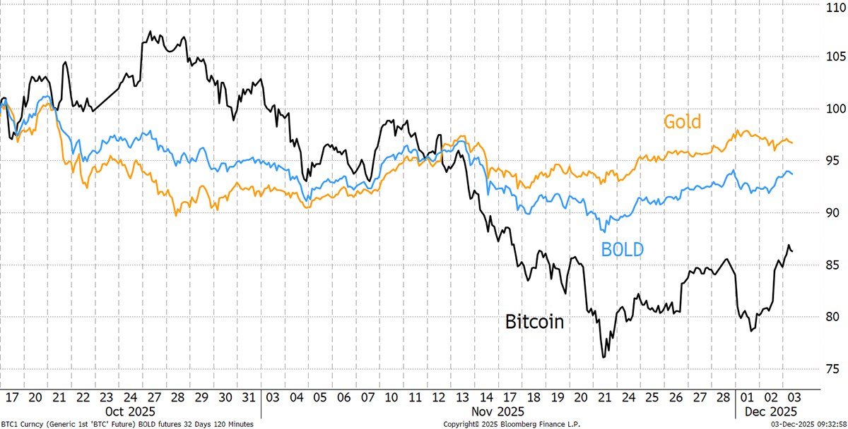 Looking more closely at the recent Bitcoin rally, it is encouraging to see the two-week high. It is also notable that this week’s rally displaced gold, if only slightly. It reaffirms our core view that these assets are highly complementary, as BOLD, our Bitcoin and Gold index, demonstrates.