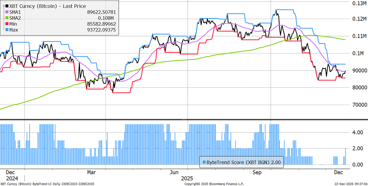 Bitcoin’s ByteTrend Score is back to a 2. It is positive that the price is trying to stabilise and has not breached the April low.
