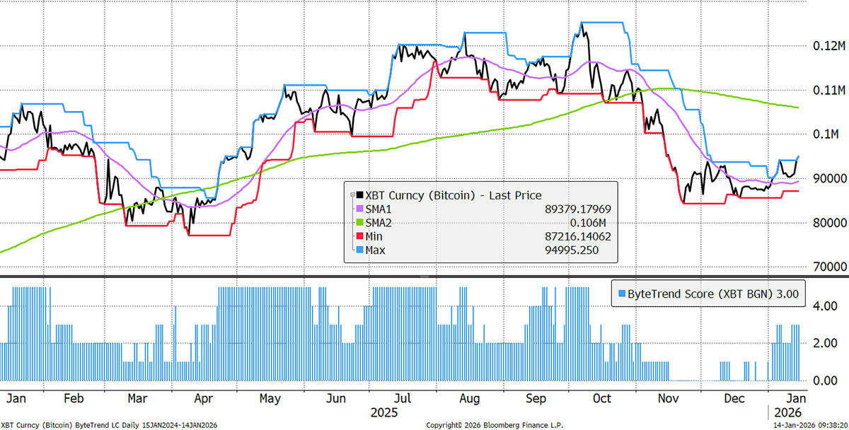 Bitcoin’s ByteTrend Score holds a 3. The short-term trend is up and looks promising, but the 200-day medium-term trend remains downward sloping. It will likely take time to restore the Bitcoin trends to rude health, but I’m optimistic.