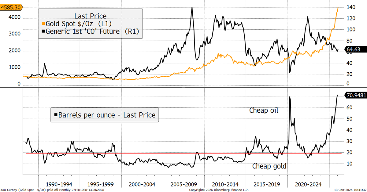 I read that Venezuela, which has the world’s largest oil reserves (according to Venezuela), will not see restored production for up to 10 years, even with help from the US. Russian infrastructure is being attacked regularly, and Iran is in disarray. In the noughties, oil led gold, but gold still rose. This time, gold leads oil. I cannot imagine a scenario where commodities break ranks and do not see a group move as is commonplace. With oil so cheap, the market so short, sentiment so weak, and everyone a bear, there’s only one thing to do.