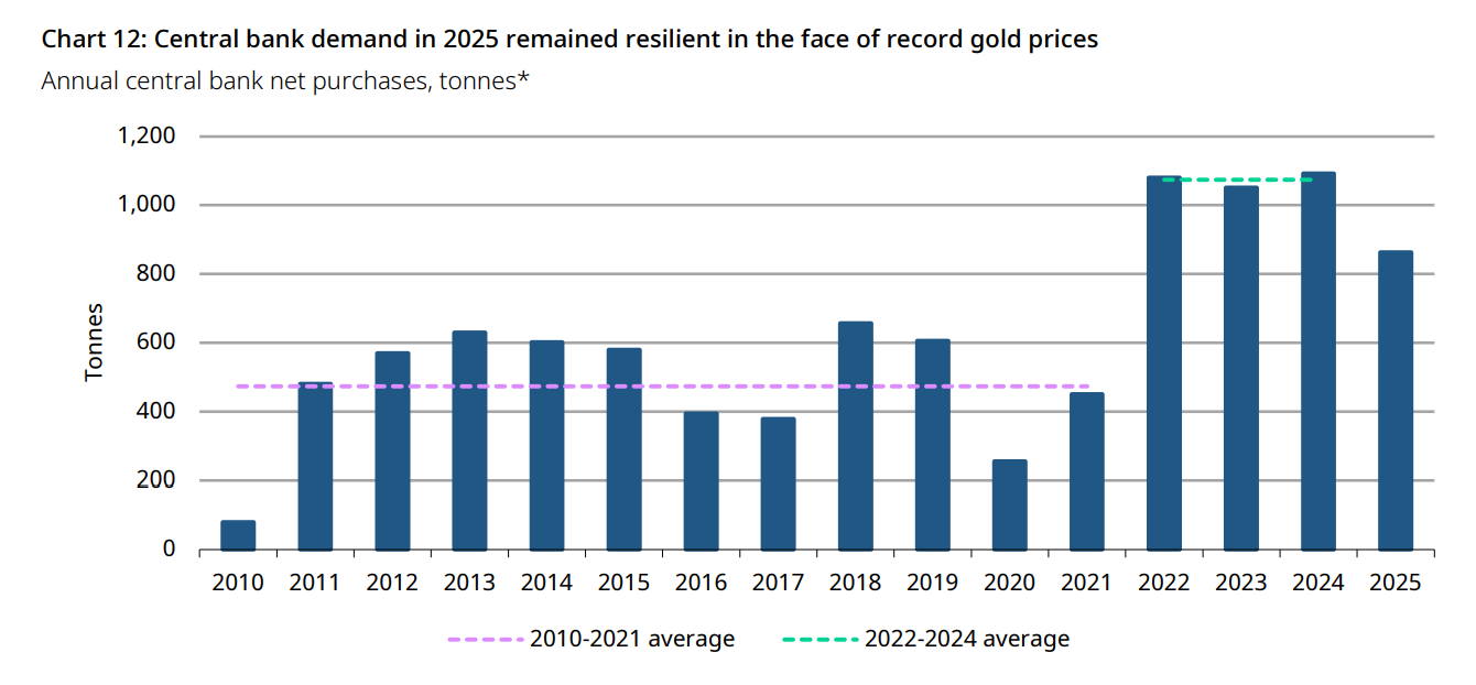 The evidence is clear. The central banks had been steady new buyers up until 2021, and then more than doubled their purchases since 2022. Data on central bank demand in 2025 has just been released, and it was 20% down on 2024, presumably due to higher prices. They are price-sensitive buyers and are known to be a stabilising source of demand. The CBs are perhaps better at underpinning the gold price rather than driving it higher. For that, we depend more on speculators.